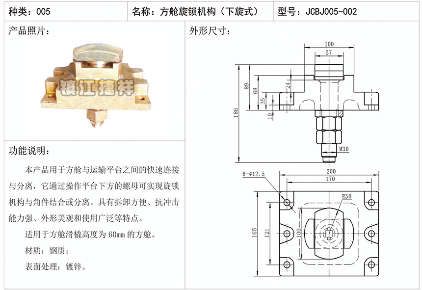 方型旋锁机构(下旋式)