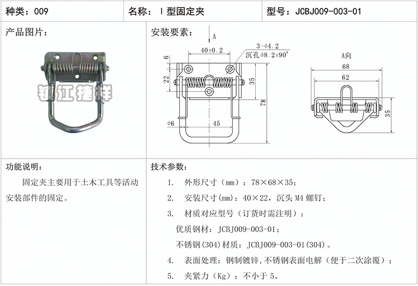 I型固定夹