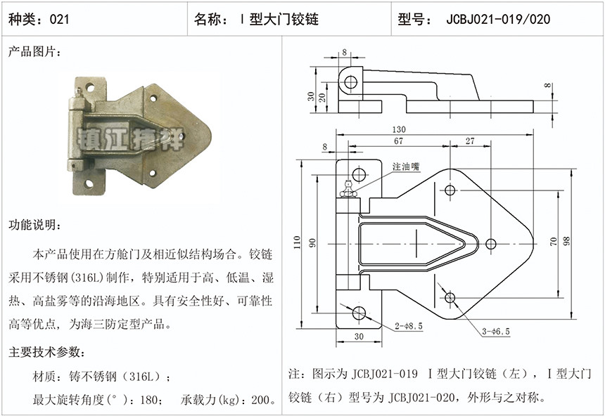I型大门铰链