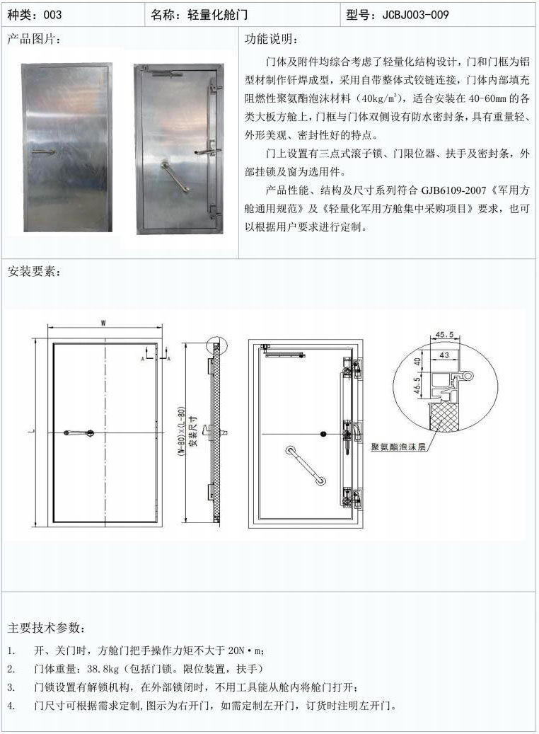 轻量化舱门 JCBJ003-009