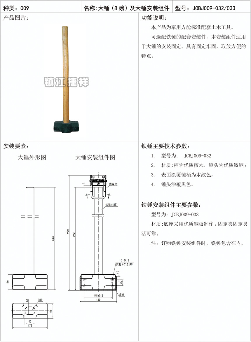 大锤(8磅)及大锤安装组件