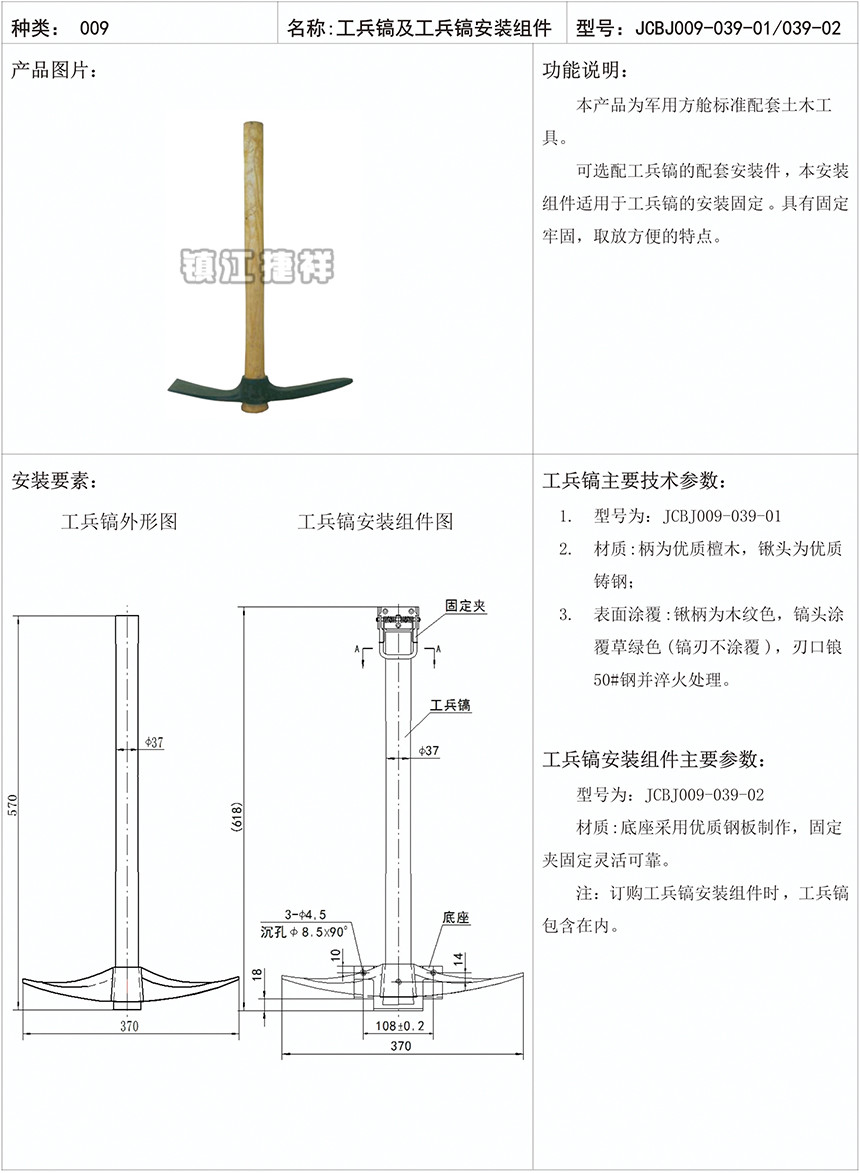 工兵镐及工兵镐安装组件