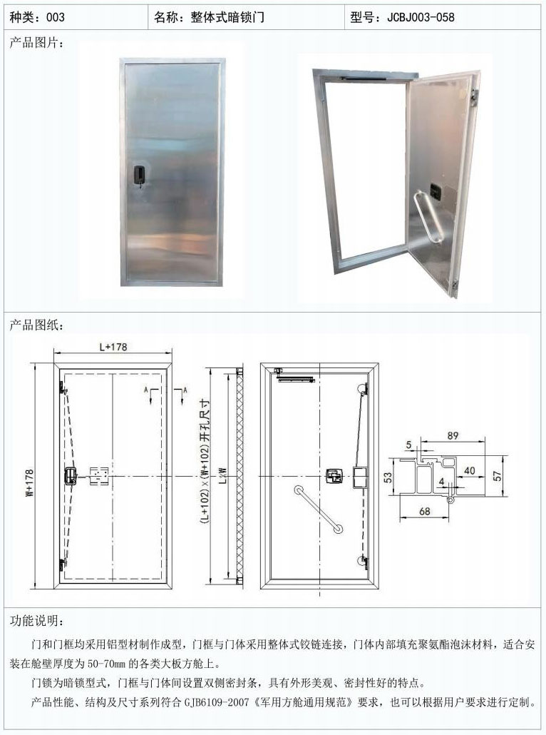 整体式暗锁门 JCBJ003-058