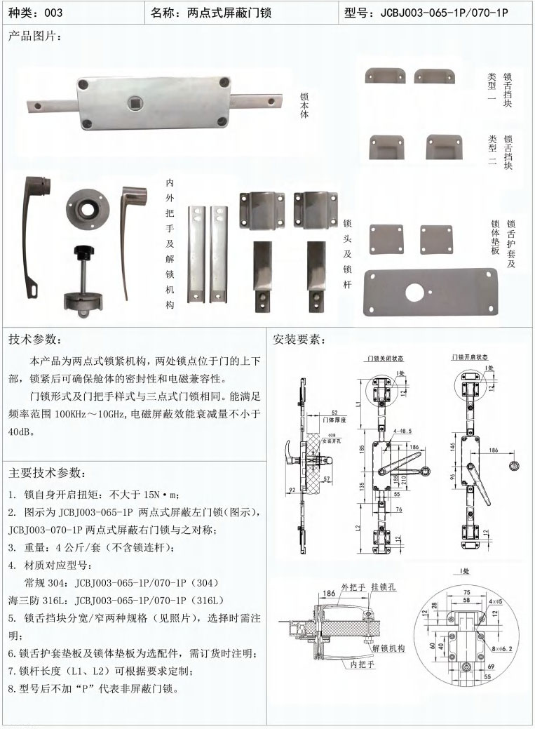 两点式屏蔽门锁-JCBJ003-065-1P/070-1P